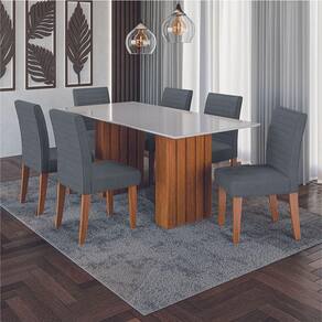 MODELO: Conjunto de Mesa Sala de Jantar Ripada Tampo com Vidro Santiago 1,80m 6 Cadeiras Creta
