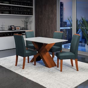 O Conjunto de Mesa com 4 cadeiras Grécia é perfeito para compor sua cozinha ou Sala de Jantar. A mesa possui base com design moderno, e tampo em MDF com vidro temperado, que forma uma camada transparente de alta resistência que garante mais qualidade além de deixa seu ambiente mais sofisticado. As cadeiras são uma peça de destaque que trazem estilo e conforto para o seu espaço. Com assento acolchoado e encosto bordado com espaldar, elas são revestidas com tecido Veluplus de alta qualidade, que oferece toque macio e durabilidade excepcional. Feitas com materiais resistentes e fáceis de limpar garantindo maior durabilidade e resistência.