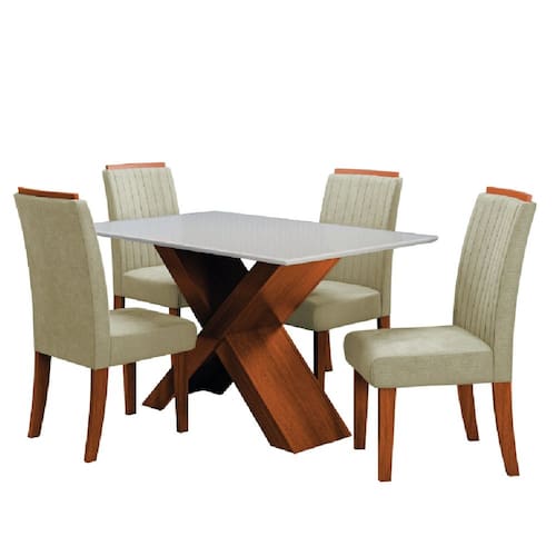 Conjunto de Mesa Sala de Jantar Tampo com Vidro 1,36m 4 Cadeiras Grécia Dobuê - Bege