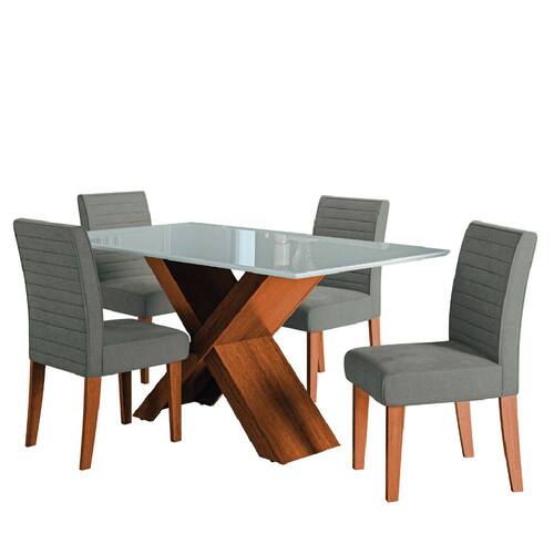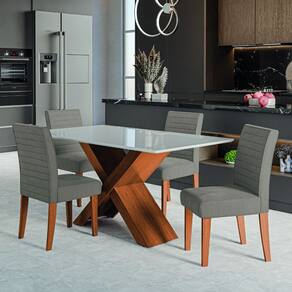 O Conjunto de Mesa Grécia com 4 cadeiras Creta é perfeito para compor sua cozinha ou Sala de Jantar. A mesa possui base com design moderno, e tampo em MDF com vidro temperado, que forma uma camada transparente de alta resistência que garante mais qualidade além de deixar seu ambiente mais sofisticado. As cadeiras oferecem assento e encosto acolchoado e revestido com tecido Veluplus de alta qualidade, a cadeira oferece toque macio e durabilidade excepcional. Feita com materiais resistentes e fáceis de limpar, garantindo maior durabilidade e resistência.