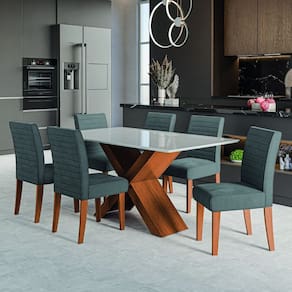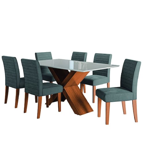 O Conjunto de Mesa Grécia com 6 cadeiras Creta é perfeito para compor sua cozinha ou Sala de Jantar. A mesa possui base com design moderno, e tampo em MDF com vidro temperado, que forma uma camada transparente de alta resistência que garante mais qualidade além de deixar seu ambiente mais sofisticado. As cadeiras oferecem assento e encosto acolchoado e revestido com tecido Veluplus de alta qualidade, a cadeira oferece toque macio e durabilidade excepcional. Feita com materiais resistentes e fáceis de limpar, garantindo maior durabilidade e resistência.