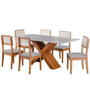 Conjunto De Mesa Sala De Jantar Tampo Com Vidro 1,80m Grécia 6 Cadeiras Santiago Dobuê Madeirado / Cinza