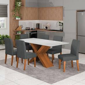 O Conjunto de Mesa Grécia com 6 cadeiras Trieste é perfeito para compor sua cozinha ou Sala de Jantar. A mesa possui base com design moderno, e tampo em MDF com vidro temperado, que forma uma camada transparente de alta resistência que garante mais qualidade além de deixar seu ambiente mais sofisticado. Já as cadeiras, com estrutura em MDF e revestimento em tecido Veluplus, oferecem um toque suave e aconchegante. Os assentos e encostos são acolchoados com espuma de alta qualidade, proporcionando máximo conforto.