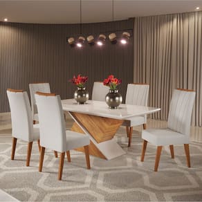 MODELO: Conjunto de Mesa Sala de Jantar Tampo com Vidro Engel 1,80m 6 Cadeiras Sofia