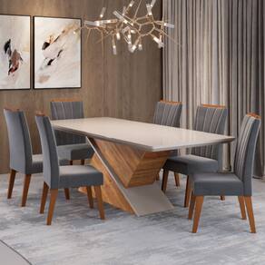 MODELO: Conjunto de Mesa Sala de Jantar Tampo com Vidro Engel 1,80m 6 Cadeiras Sofia