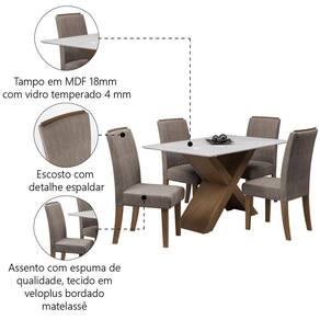 Conjunto De Mesa Sala De Jantar Tampo Com Vidro Grécia 4 Cadeiras Off White / Mascavo / Cedro 1,36m Dobuê Cedro / Off White