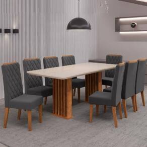MODELO: Conjunto de Mesa Sala de Jantar Tampo com Vidro Mond 2m 8 Cadeiras Bele Veludo