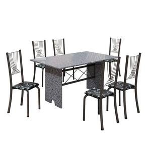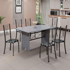 Conjunto de Mesa Tampo de Granito Ocre com 6 Cadeiras Lorena Yescasa Preto Floral/Mart Prata - Cinza