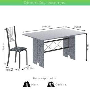 Medida da Mesa (A x L x P): 75 cm x 75 cm x 140 cm