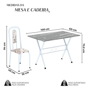 Quer deixar sua casa completa e prática? Uma dica bacana de como transformar o seu lar, deixando-o mais receptivo e bonito? Então você precisa de móveis indispensáveis para deixar seu lar muito mais aconchegante, receptivo e sempre disponível para receber a visita de amigos, familiares e convidados. Você vai se apaixonar por este incrível e moderno Conjunto de Mesa com 4 Cadeiras. Ideal para cozinha, ele é a melhor opção para completar o espaço que você desejar. Aproveite!! Medida da Mesa (A x L x P): 75,8 cm x 100 cm x 60 cm Peso da Mesa: 39,82 kg Mesa suporta até: 10.0000 Acabamento da Cadeira/Banco: Pintura Texturizada Acabamento da Mesa: Pintura Texturizada Ambiente Principal: Cozinha Cadeira/Banco Estofada: Somente Assento Estofado Cadeira/Banco estofada: Somente Assento Estofado Cadeira/Banco suporta até: 120.0000 codigo_ean: 7900288128522 Complexidade da Montagem: Baixa: pode ser montado por uma pessoa sozinha Cor: Branco Cor do Produto: Branco Cor Secundária: Bege De Canto (Canto Alemão): Não Escala de Brilho: Semi-Brilho Espessura do Tampo: 1,5 mm Estrutura do Assento: MDP Formato do Tampo: Retangular Itens Inclusos: 1 Mesa, 4 Cadeiras, Manual de Montagem e Kit Ferragens Linha ou Coleção: Lívia Manual de Montagem e Instalação: https://product-hub-prd.madeiramadeira.com.br/740049538/documents/52ebe852-6299-43da-ad3d-5fd537e1d5b072716723352817406057034671.pdf Marca: Soma Móveis Material da Base da Mesa: Aço Material da Estrutura da Cadeira: Aço Material do Tampo: Granito Medida da Cadeira/Banco (A x L x P): 94 cm x 36 cm x 40 cm Medida do Tampo (L x C x E): 100cm x 60cm x 1,5 cm Mesa Extensível: Não Necessita Montagem: Sim Origem do Produto: Nacional Peso da Cadeira/Banco: 2,28 kg Possui Apoio Para os Pés: Não Quantidade de Cadeiras: 4 Quantidade de Lugares: 04 Recomendações de Uso, Manutenção e Limpeza: Não permitir que molhe os pés da base, usar um pano de tecido macio e seco, evitar detergentes, alvejantes e produtos químicos de limpeza; no tampo usar tecido macio levemente umedecido. Sistema de Montagem: Parafusos