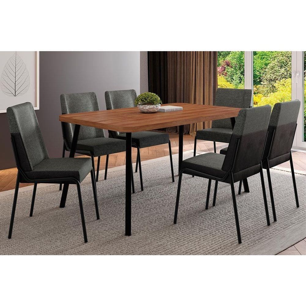 conjunto de mesa tampo granito 6 cadeiras aco