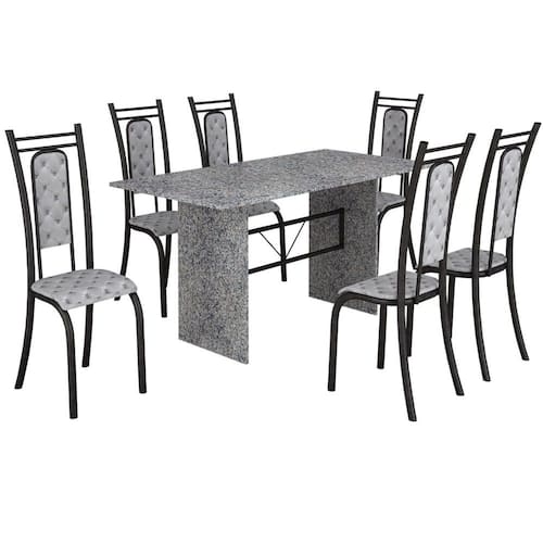 UAU! Olha só que incrível este Conjunto de Mesa com 06 cadeiras Paris! É ideal para vocêque gosta de contar com móveis de qualidade para deixar as suas refeições muito mais agradáveis,levando conforto, beleza e sofisticação para sua sala de jantar ou cozinha. É tudo que falta para completar sua casa.