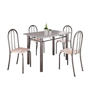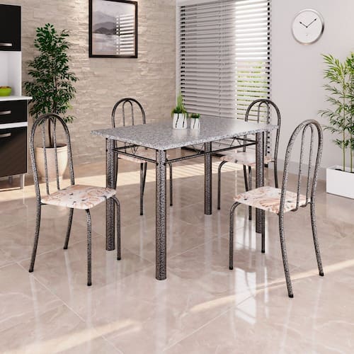 Conjunto de Mesa Tubular 100cm X 60cm Tampo em Granito com 4 Cadeiras Bege /Prata