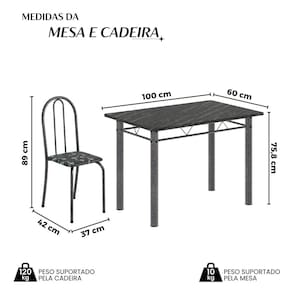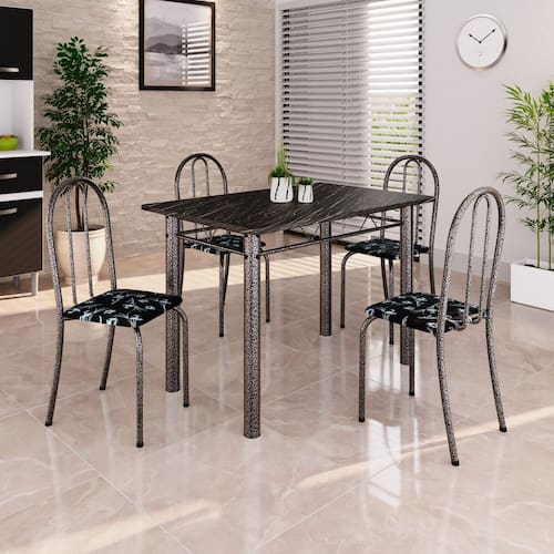 Quer deixar sua casa completa e prática? Uma dica bacana de como transformar o seu lar, deixando-o mais receptivo e bonito? Então você precisa de móveis indispensáveis para deixar seu lar muito mais aconchegante, receptivo e sempre disponível para receber a visita de amigos, familiares e convidados. Você vai se apaixonar por este incrível e moderno Conjunto de Mesa com 4 Cadeiras ANE B. Ideal para cozinha, ele é a melhor opção para completar o espaço que você desejar. Aproveite!! Medida da Mesa (A x L x P): 75,8 cm x 100 cm x 60 cm Peso da Mesa: 25,92 kg Mesa suporta até: 10.0000 Acabamento da Cadeira/Banco: Pintura Texturizada Acabamento da Mesa: Pintura Texturizada Ambiente Principal: Cozinha Cadeira/Banco estofada: Somente Assento Estofado Cadeira/Banco Estofada: Somente Assento Estofado Cadeira/Banco suporta até: 120.0000 codigo_ean: 7900288048851 Complexidade da Montagem: Baixa: pode ser montado por uma pessoa sozinha Cor: Preto/ Prata Cor do Produto: Preto/ Prata Cor Secundária: Cinza De Canto (Canto Alemão): Não Escala de Brilho: Brilhante Espessura do Tampo: 1,5 mm Estrutura do Assento: MDP Formato do Tampo: Retangular Itens Inclusos: 1 Mesa, 4 Cadeiras, 1 Kit Ferragens e 1 Manual de Montagem Linha ou Coleção: Ane B Manual de Montagem e Instalação: https://product-hub-prd.madeiramadeira.com.br/975399/documents/9c1ac249-4b87-427a-adcd-b3e6d4c50e022645257352817375705415518.pdf Marca: Soma Móveis Material da Base da Mesa: Aço Material da Estrutura da Cadeira: Aço Material do Tampo: Ardósia Medida da Cadeira/Banco (A x L x P): 89 cm x 37 cm x 42 cm Medida do Tampo (L x C x E): 60 cm x 100 cm x 1,5 cm Mesa Extensível: Não Necessita Montagem: Sim Origem do Produto: Nacional Peso da Cadeira/Banco: 3 kg Possui Apoio Para os Pés: Não Quantidade de Cadeiras: 4 Quantidade de Lugares: 04 Recomendações de Uso, Manutenção e Limpeza: Não permitir que molhe os pés da base, usar um pano de tecido macio e seco, evitar detergentes, alvejantes e produtos químicos de limpeza; no tampo usar tecido macio levemente umedecido. Sistema de Montagem: Parafusos