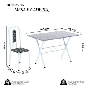 Quer deixar sua casa completa e prática? Uma dica bacana de como transformar o seu lar, deixando-o mais receptivo e bonito? Então você precisa de móveis indispensáveis para deixar seu lar muito mais aconchegante, receptivo e sempre disponível para receber a visita de amigos, familiares e convidados. Você vai se apaixonar por este incrível e moderno Conjunto de Mesa com 4 Cadeiras. Ideal para cozinha, ele é a melhor opção para completar o espaço que você desejar. Aproveite!! Medida da Mesa (A x L x P): 75,8 cm x 100 cm x 60 cm Peso da Mesa: 33,9 kg Mesa suporta até: 10.0000 Acabamento da Cadeira/Banco: Pintura Texturizada Acabamento da Mesa: Pintura Texturizada Ambiente Principal: Cozinha Cadeira/Banco Estofada: Somente Assento Estofado Cadeira/Banco estofada: Somente Assento Estofado Cadeira/Banco suporta até: 120.0000 codigo_ean: 7900288128638 Complexidade da Montagem: Baixa: pode ser montado por uma pessoa sozinha Cor: Preto/ Branco Cor do Produto: Preto/ Branco Cor Secundária: Cinza De Canto (Canto Alemão): Não Escala de Brilho: Semi-Brilho Espessura do Tampo: 1,5 mm Estrutura do Assento: MDP Formato do Tampo: Retangular Itens Inclusos: 1 Mesa, 4 Cadeiras, Kit Ferragens e Manual de Montagem Linha ou Coleção: Lívia Manual de Montagem e Instalação: https://product-hub-prd.madeiramadeira.com.br/811821893/documents/1c95b50b-a7bc-4e6f-933d-b1e2618e5a5742716723352817406057034671.pdf Marca: Soma Móveis Material da Base da Mesa: Aço Material da Estrutura da Cadeira: Aço Material do Tampo: Granito Medida da Cadeira/Banco (A x L x P): 94 cm x 36 cm x 40 cm Medida do Tampo (L x C x E): 100cm x 60cm x 1,5 cm Mesa Extensível: Não Necessita Montagem: Sim Origem do Produto: Nacional Peso da Cadeira/Banco: 2,28 kg Possui Apoio Para os Pés: Não Quantidade de Cadeiras: 4 Quantidade de Lugares: 04 Recomendações de Uso, Manutenção e Limpeza: Não permitir que molhe os pés da base, usar um pano de tecido macio e seco, evitar detergentes, alvejantes e produtos químicos de limpeza; no tampo usar tecido macio levemente umedecido. Sistema de Montagem: Parafusos