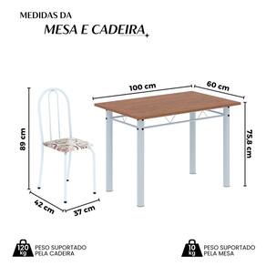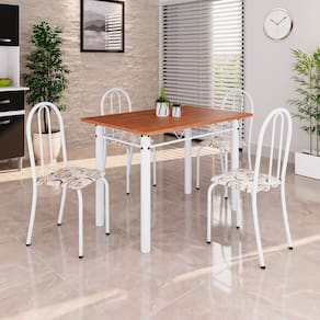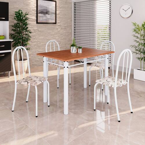 Quer deixar sua casa completa e prática? Uma dica bacana de como transformar o seu lar, deixando-o mais receptivo e bonito? Então você precisa de móveis indispensáveis para deixar seu lar muito mais aconchegante, receptivo e sempre disponível para receber a visita de amigos, familiares e convidados. Você vai se apaixonar por este incrível e moderno Conjunto de Mesa com 4 Cadeiras ANE B. Ideal para cozinha, ele é a melhor opção para completar o espaço que você desejar. Aproveite!! Medida da Mesa (A x L x P): 75,8 cm x 100 cm x 60 cm Peso da Mesa: 11,46 kg Mesa suporta até: 10.0000 Acabamento da Cadeira/Banco: Pintura Texturizada Acabamento da Mesa: Pintura Texturizada Ambiente Principal: Cozinha Cadeira/Banco estofada: Somente Assento Estofado Cadeira/Banco Estofada: Somente Assento Estofado Cadeira/Banco suporta até: 120.0000 codigo_ean: 7900288049469 Complexidade da Montagem: Baixa: pode ser montado por uma pessoa sozinha Cor: Arabesco/ Branco Cor do Produto: Arabesco/ Branco Cor Secundária: Bege De Canto (Canto Alemão): Não Escala de Brilho: Brilhante Espessura do Tampo: 1,5 mm Estrutura do Assento: MDP Formato do Tampo: Retangular Itens Inclusos: 1 Mesa, 4 Cadeiras, 1 Kit Ferragens e 1 Manual de Montagem Linha ou Coleção: Ane B Manual de Montagem e Instalação: https://product-hub-prd.madeiramadeira.com.br/975555/documents/82266f58-ef8b-47a8-87ba-edb7232f003e2645257352817375705415518.pdf Marca: Soma Móveis Material da Base da Mesa: Aço Material da Estrutura da Cadeira: Aço Material do Tampo: MDF Medida da Cadeira/Banco (A x L x P): 89 cm x 37 cm x 42 cm Medida do Tampo (L x C x E): 60 cm x 100 cm x 1,5 cm Mesa Extensível: Não Necessita Montagem: Sim Origem do Produto: Nacional Peso da Cadeira/Banco: 3 kg Possui Apoio Para os Pés: Não Quantidade de Cadeiras: 4 Quantidade de Lugares: 04 Recomendações de Uso, Manutenção e Limpeza: Não permitir que molhe os pés da base, usar um pano de tecido macio e seco, evitar detergentes, alvejantes e produtos químicos de limpeza; no tampo usar tecido macio levemente umedecido. Sistema de Montagem: Parafusos