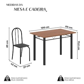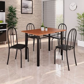 Quer deixar sua casa completa e prática? Uma dica bacana de como transformar o seu lar, deixando-o mais receptivo e bonito? Então você precisa de móveis indispensáveis para deixar seu lar muito mais aconchegante, receptivo e sempre disponível para receber a visita de amigos, familiares e convidados. Você vai se apaixonar por este incrível e moderno Conjunto de Mesa com 4 Cadeiras ANE B. Ideal para cozinha, ele é a melhor opção para completar o espaço que você desejar. Aproveite!! Medida da Mesa (A x L x P): 75,8 cm x 100 cm x 60 cm Peso da Mesa: 11,46 kg Mesa suporta até: 10.0000 Acabamento da Cadeira/Banco: Pintura Texturizada Acabamento da Mesa: Pintura Texturizada Ambiente Principal: Cozinha Cadeira/Banco estofada: Somente Assento Estofado Cadeira/Banco Estofada: Somente Assento Estofado Cadeira/Banco suporta até: 120.0000 codigo_ean: 7900288049513 Complexidade da Montagem: Baixa: pode ser montado por uma pessoa sozinha Cor: Preto Cor do Produto: Preto Cor Secundária: Marrom De Canto (Canto Alemão): Não Escala de Brilho: Semi-Brilho Espessura do Tampo: 1,5 mm Estrutura do Assento: MDP Formato do Tampo: Retangular Itens Inclusos: 1 Mesa, 4 Cadeiras, 1 Kit Ferragens e 1 Manual de Montagem Linha ou Coleção: Ane B Manual de Montagem e Instalação: https://product-hub-prd.madeiramadeira.com.br/975560/documents/748e5bf0-0dda-41cf-904c-c8128d2a2c7e2645257352817375705415518.pdf Marca: Soma Móveis Material da Base da Mesa: Aço Material da Estrutura da Cadeira: Aço Material do Tampo: MDF Medida da Cadeira/Banco (A x L x P): 89 cm x 37 cm x 42 cm Medida do Tampo (L x C x E): 60 cm x 100 cm x 1,5 cm Mesa Extensível: Não Necessita Montagem: Sim Origem do Produto: Nacional Peso da Cadeira/Banco: 3 kg Possui Apoio Para os Pés: Não Quantidade de Cadeiras: 4 Quantidade de Lugares: 04 Recomendações de Uso, Manutenção e Limpeza: Não permitir que molhe os pés da base, usar um pano de tecido macio e seco, evitar detergentes, alvejantes e produtos químicos de limpeza; no tampo usar tecido macio levemente umedecido. Sistema de Montagem: Parafusos