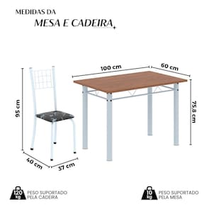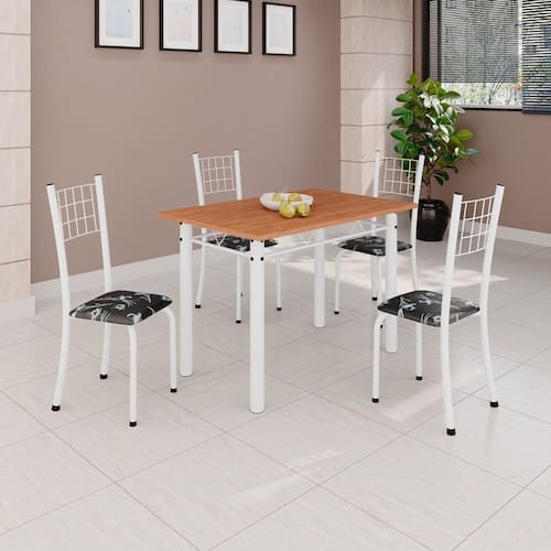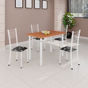 Quer deixar sua casa completa e prática? Uma dica bacana de como transformar o seu lar, deixando-o mais receptivo e bonito? Então você precisa de móveis indispensáveis para deixar seu lar muito mais aconchegante, receptivo e sempre disponível para receber a visita de amigos, familiares e convidados. Você vai se apaixonar por este incrível e moderno Conjunto de Mesa com 4 Cadeiras. Ideal para cozinha, ele é a melhor opção para completar o espaço que você desejar. Aproveite!! Medida da Mesa (A x L x P): 75,8 cm x 100 cm x 60 cm Peso da Mesa: 11,46 kg Mesa suporta até: 10.0000 Acabamento da Cadeira/Banco: Pintura Texturizada Acabamento da Mesa: Pintura Texturizada Ambiente Principal: Sala de Jantar Cadeira/Banco estofada: Somente Assento Estofado Cadeira/Banco Estofada: Somente Assento Estofado Cadeira/Banco suporta até: 120.0000 codigo_ean: 7900288053220 Complexidade da Montagem: Baixa: pode ser montado por uma pessoa sozinha Cor: Preto/Branco Cor do Produto: Preto/Branco Cor Secundária: Cinza De Canto (Canto Alemão): Não Escala de Brilho: Brilhante Espessura do Tampo: 1,5 mm Estrutura do Assento: MDP Formato do Tampo: Retangular Itens Inclusos: 1 Mesa + 4 Cadeiras + 1 Kit Ferragens + Manual de Montagem Linha ou Coleção: Dany Manual de Montagem e Instalação: https://product-hub-prd.madeiramadeira.com.br/975912/documents/52ba8b8d-0b40-44f8-99f4-d094d0a4387f2645612352817375766831192.pdf Marca: Soma Móveis Material da Base da Mesa: Aço Material da Estrutura da Cadeira: Aço Material do Tampo: MDF Medida da Cadeira/Banco (A x L x P): 95 cm x 37 cm x 40 cm Medida do Tampo (L x C x E): 60 cm x 100 cm x 1,5 cm Mesa Extensível: Não Necessita Montagem: Sim Origem do Produto: Nacional Peso da Cadeira/Banco: 2,94 kg Possui Apoio Para os Pés: Não Quantidade de Cadeiras: 4 Quantidade de Lugares: 04 Recomendações de Uso, Manutenção e Limpeza: Não permitir que molhe os pés da base, usar um pano de tecido macio e seco, evitar detergentes, alvejantes e produtos químicos de limpeza; no tampo usar tecido macio levemente umedecido. Sistema de Montagem: Parafusos