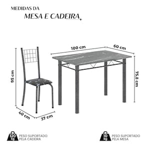 Medida da Mesa (A x L x P): 75,8 cm x 100 cm x 60 cm