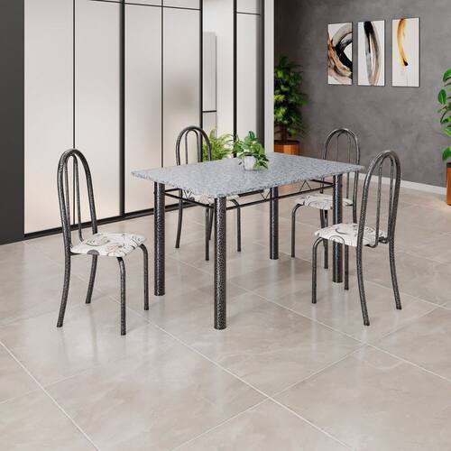 Conjunto de Mesa Tubular 120cm X 75cm Tampo com 4 Cadeiras Arabesco/ Prata