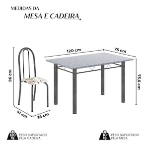 Medida da Mesa (A x L x P): 75,6 cm x 120 cm x 75cm