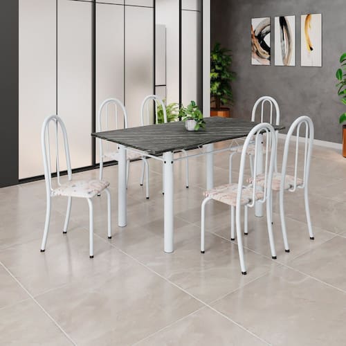 Quer deixar sua casa completa e prática? Uma dica bacana de como transformar o seu lar, deixando-o mais receptivo e bonito? Então você precisa de móveis indispensáveis para deixar seu lar muito mais aconchegante, receptivo e sempre disponível para receber a visita de amigos, familiares e convidados. Você vai se apaixonar por este incrível e moderno Conjunto de Mesa com 6 Cadeiras. Ideal para cozinha, ele é a melhor opção para completar o espaço que
