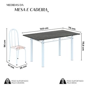 você desejar. Aproveite!! Medida da Mesa (A x L x P): 75,6 cm x 140 cm x 75cm Peso da Mesa: 54,98 kg Mesa suporta até: 10.0000 Acabamento da Cadeira/Banco: Pintura Texturizada Acabamento da Mesa: Pintura Texturizada Ambiente Principal: Sala de Jantar Cadeira/Banco estofada: Somente Assento Estofado Cadeira/Banco Estofada: Somente Assento Estofado Cadeira/Banco suporta até: 120.0000 codigo_ean: 7900288062772 Complexidade da Montagem: Baixa: pode ser montado por uma pessoa sozinha Cor: Bege / Branco Cor do Produto: Bege / Branco Cor Secundária: Bege De Canto (Canto Alemão): Não Escala de Brilho: Brilhante Espessura do Tampo: 1,5 mm Estrutura do Assento: MDP Formato do Tampo: Retangular Itens Inclusos: 1 Mesa + 6 Cadeiras + 1 Kit Ferragens + Manual de Montagem Linha ou Coleção: Iris B Manual de Montagem e Instalação: https://product-hub-prd.madeiramadeira.com.br/976420/documents/13658f8d-db91-46e8-b559-0ff49a0ff6752653848352817381021070967.pdf Marca: Soma Móveis Material da Base da Mesa: Aço Material da Estrutura da Cadeira: Aço Material do Tampo: Ardósia Medida da Base (A x L x P): 75cm x 63,5 cm x 108 cm Medida da Cadeira/Banco (A x L x P): 96 cm x 36 cm x 41 cm Medida do Tampo (L x C x E): 75 cm x 140 cm x 1,5 cm Mesa Extensível: Não Necessita Montagem: Sim Origem do Produto: Nacional Peso da Cadeira/Banco: 3,88 kg Possui Apoio Para os Pés: Não Possui Suporte Giratório: Não Quantidade de Cadeiras: 6 Quantidade de Lugares: 06 Recomendações de Uso, Manutenção e Limpeza: Não permitir que molhe os pés da base, usar um pano de tecido macio e seco, evitar detergentes, alvejantes e produtos químicos de limpeza; no tampo usar tecido macio levemente umedecido. Sistema de Montagem: Parafusos