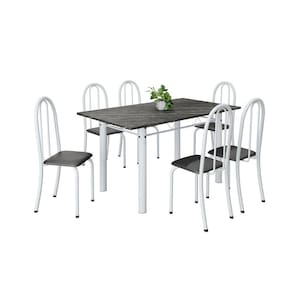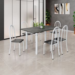 Conjunto de Mesa Tubular 140cm X 75cm Tampo em Ardósia Indiano com 6 Cadeiras Iris B Preto / Branco