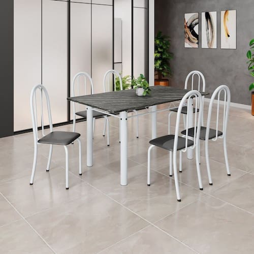 Quer deixar sua casa completa e prática? Uma dica bacana de como transformar o seu lar, deixando-o mais receptivo e bonito? Então você precisa de móveis indispensáveis para deixar seu lar muito mais aconchegante, receptivo e sempre disponível para receber a visita de amigos, familiares e convidados. Você vai se apaixonar por este incrível e moderno Conjunto de Mesa com 6 Cadeiras. Ideal para cozinha, ele é a melhor opção para completar o espaço que