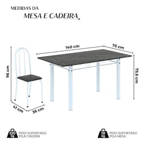 Medida da Mesa (A x L x P): 75,6 cm x 140 cm x 75cm