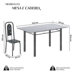 Quer deixar sua casa completa e prática? Uma dica bacana de como transformar o seu lar, deixando-o mais receptivo e bonito? Então você precisa de móveis indispensáveis para deixar seu lar muito mais aconchegante, receptivo e sempre disponível para receber a visita de amigos, familiares e convidados. Você vai se apaixonar por este incrível e moderno Conjunto de Mesa com 6 Cadeiras. Ideal para cozinha, ele é a melhor opção para completar o espaço que você desejar. Aproveite!! Medida da Mesa (A x L x P): 75,8 cm x 140 cm x 75 cm Peso da Mesa: 59,4 kg Mesa suporta até: 10.0000 Acabamento da Cadeira/Banco: Pintura Texturizada Acabamento da Mesa: Pintura Texturizada Ambiente Principal: Cozinha Cadeira/Banco Estofada: Somente Assento Estofado Cadeira/Banco estofada: Somente Assento Estofado Cadeira/Banco suporta até: 120.0000 codigo_ean: 7900288117236 Complexidade da Montagem: Baixa: pode ser montado por uma pessoa sozinha Cor: Preto/Prata Cor do Produto: Preto/Prata Cor Secundária: Cinza De Canto (Canto Alemão): Não Escala de Brilho: Semi-Brilho Espessura do Tampo: 1,5 mm Estrutura do Assento: MDP Formato do Tampo: Retangular Itens Inclusos: 1 Mesa, 6 Cadeiras, Manual de Montagem e Kit Ferragens Linha ou Coleção: Lara Manual de Montagem e Instalação: https://product-hub-prd.madeiramadeira.com.br/992451/documents/7fd05021-30c1-4f7f-a396-86956195b7e02821966352817442234269539.pdf Marca: Soma Móveis Material da Base da Mesa: Aço Material da Estrutura da Cadeira: Aço Material do Tampo: Granito Medida da Cadeira/Banco (A x L x P): 105 cm x 37 cm x 40 cm Medida do Tampo (L x C x E): 140cm x 75cm x 1,5 cm Mesa Extensível: Não Necessita Montagem: Sim Origem do Produto: Nacional Peso da Cadeira/Banco: 2,7 kg Possui Apoio Para os Pés: Não Quantidade de Cadeiras: 6 Quantidade de Lugares: 06 Recomendações de Uso, Manutenção e Limpeza: Não permitir que molhe os pés da base, usar um pano de tecido macio e seco, evitar detergentes, alvejantes e produtos químicos de limpeza; no tampo usar tecido macio levemente umedecido. Sistema de Montagem: Parafusos