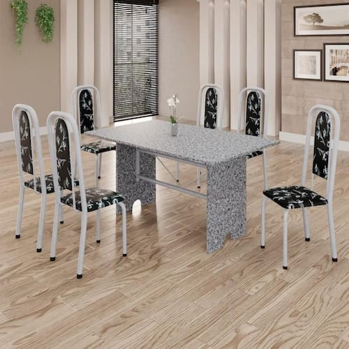 Quer deixar sua casa completa? Uma dica bacana de como transformar o seu lar, deixando-o mais receptivo e bonito? Você vai se apaixonar por este incrível Conjunto de Mesa com 6 Cadeiras Letícia.