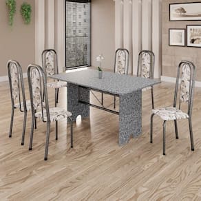 Produto: Conjunto de Mesa Tubular 6 Cadeiras 140x75cm Mart Prata com Tampo em Granito Ocre Letícia 070 - Tudo de Móveis Cor: Preto Floral