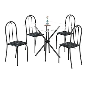 Quer deixar sua casa completa e prática? Uma dica bacana de como transformar o seu lar, deixando-o mais receptivo e bonito? Então você precisa de móveis indispensáveis para deixar seu lar muito mais aconchegante, receptivo e sempre disponível para receber a visita de amigos, familiares e convidados. Você vai se apaixonar por este incrível e moderno Conjunto de Mesa com 4 Cadeiras ANE B. Ideal para cozinha, ele é a marromhor opção para completar o espaço que você desejar. Aproveite!! Acabamento da Cadeira/Banco: Pintura Texturizada Acabamento da Mesa: Pintura Texturizada Almofada do assento: Altura do Conjunto: Ambiente Principal: Cozinha Apoio para Braços Estofado: Cadeira/Banco estofada: Sim Cadeira/Banco suporta até: 120 Complexidade da Montagem: Baixa: pode ser montado por uma pessoa sozinha Cor: Preto Floral/Martelado Prata/Vidro Incolor Cor do Produto: Preto Floral/Martelado Prata/Vidro Incolor Enchimento do Assento: Espuma D-16 Enchimento do Encosto: Escala de Brilho: Semi-Brilho Espessura do Tampo: 0.6 Estrutura do Assento: Assento em MDP de 15mm com couríssimo. Estrutura do Encosto: Informações Complementares: Itens Inclusos: 1 Mesa, 4 Cadeiras, Kit Ferragens e Manual de Montagem Linha ou Coleção: Ane B Manual de Especificação Técnica: Manual de Montagem e Instalação: https://cdn2.madeiramadeira.com.br/atributo/soma-moveis-ltda/1179281-ilovepdf-merged-31.pdf Material da Base da Mesa: Aço Material da Estrutura da Cadeira: Aço Medida da Base (A x L x P): Medida da Cadeira/Banco (A x L x P): 89x37x42cm Medida da Mesa (A x L x P): 75x70x70cm Medida do Canto Alemão (A x L x P): Medida do Suporte Giratório (L x C x E): Medida do Tampo (L x C x E): 75x75x0,6cm Mesa suporta até: 10 Necessita Montagem: Sim Origem do Produto: Nacional Peso da Cadeira/Banco: 3 Peso da Mesa: 9.08 Possui Apoio para Braços: Possui Apoio Para os Pés: Não Possui Suporte Giratório: Recomendações de Uso, Manutenção e Limpeza: Não permitir que molhe os pés da base, usar um pano de tecido macio e seco, evitar detergentes, alvejantes e produtos químicos de limpeza; no tampo usar tecido macio levemente umedecido. Revestimento da Cadeira/Banco: Couro Ecológico Sistema de Montagem: Parafusos Tipo de Madeira Maciça da Base da Mesa: Tipo de Madeira Maciça do Tampo: Vidro Temperado: Sim