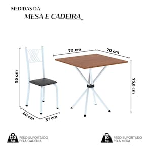 Medida da Mesa (A x L x P): 75,8 cm x 70 cm x 70 cm