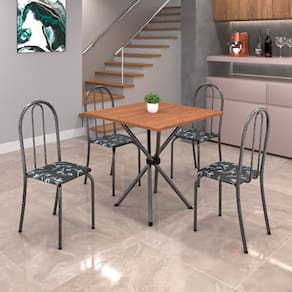 completar o espaço que você desejar. Aproveite!! Medida da Mesa (A x L x P): 75,8 cm x 70cm X 70cm Peso da Mesa: 6,53 kg Mesa suporta até: 10 kg Acabamento da Cadeira/Banco: Pintura Texturizada Acabamento da Mesa: Pintura Texturizada Ambiente Principal: Cozinha Cadeira/Banco estofada: Somente Assento Estofado Cadeira/Banco suporta até: 120 kg codigo_ean: 7900288078940 Complexidade da Montagem: Baixa: pode ser montado por uma pessoa sozinha Cor: Preto Floral / Mart Prata Cor do Produto: Preto Floral / Mart Prata Cor Secundária: Preto De Canto (Canto Alemão): Não Escala de Brilho: Semi-Brilho Espessura do Tampo: 1,5 mm Estrutura do Assento: MDP Formato do Tampo: Quadrado Itens Inclusos: 1 Mesa + 4 Cadeiras + 1 Kit Ferragens + 1 Manual de Montagem Linha ou Coleção: Ane B Manual de Montagem e Instalação: https://cdn2.madeiramadeira.com.br/atributo/soma-moveis-ltda/2699287-3528-17399065305255.pdf Marca: Soma Móveis Material da Base da Mesa: Aço Material da Estrutura da Cadeira: Aço Material do Tampo: MDF Medida da Base (A x L x P): 75 cm x 49cm² Medida da Cadeira/Banco (A x L x P): 89 cm x 37 cm x 42 cm Medida do Tampo (L x C x E): 70 cm x 70 cm x 1,5 cm Mesa Extensível: Não Necessita Montagem: Sim Origem do Produto: Nacional Peso da Cadeira/Banco: 3 kg Possui Apoio Para os Pés: Não Quantidade de Cadeiras: 4 Quantidade de Lugares: 04 Recomendações de Uso, Manutenção e Limpeza: Não permitir que molhe os pés da base, usar um pano de tecido macio e seco, evitar detergentes, alvejantes e produtos químicos de limpeza; no tampo usar tecido macio levemente umedecido. Sistema de Montagem: Parafusos