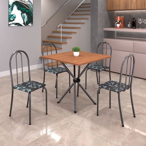 receptivo e sempre disponível para receber a visita de amigos, familiares e convidados. Você vai se apaixonar por este incrível e moderno Conjunto de Mesa com 4 Cadeiras. Ideal para cozinha, ele é a melhor opção para