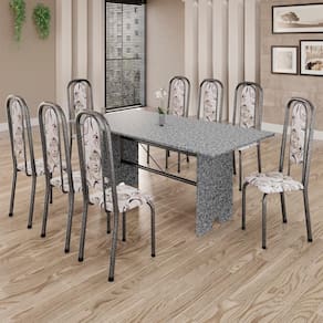 Produto: Conjunto de Mesa Tubular 8 Cadeiras 180x75cm Mart Prata com Tampo em Granito Ocre Letícia 071 - Tudo de Móveis Cor: Preto Floral