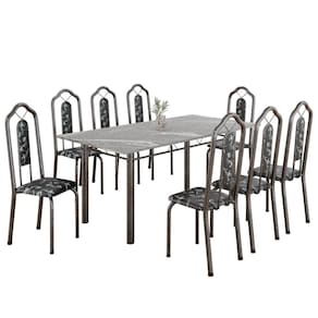 Conjunto de Mesa Tubular 8 Cadeiras 180x75cm Mart Prata com Tampo em Granito Ocre Brenda 050 - Tudo de Móveis
