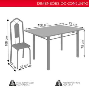 Medidas da Mesa (A x L x P): 75 cm x 75 cm x 180 cm