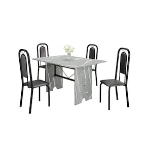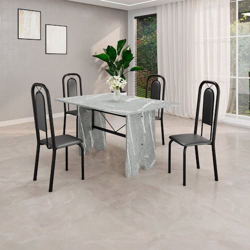 Quer deixar sua casa completa e prática? Uma dica bacana de como transformar o seu lar, deixando-o mais receptivo e bonito? Então você precisa de móveis indispensáveis para deixar seu lar muito mais aconchegante, receptivo e sempre disponível para receber a visita de amigos, familiares e convidados. Você vai se apaixonar por este incrível e moderno Conjunto de Mesa com 4 Cadeiras. Ideal para cozinha, ele é a melhor opção para completar o espaço que você desejar. Aproveite!! Medida da Mesa (A x L x P): 75,8 cm x 120 cm x 75 cm Peso da Mesa: 80,25 kg Mesa suporta até: 10 kg Acabamento da Cadeira/Banco: Pintura Texturizada Acabamento da Mesa: Pintura Texturizada Ambiente Principal: Cozinha Cadeira/Banco estofada: Encosto e Assento Estofados Cadeira/Banco suporta até: 120 kg codigo_ean: 7900288145116 Complexidade da Montagem: Baixa: pode ser montado por uma pessoa sozinha Cor: Preto / Granito Cor do Produto: Preto / Granito Cor Secundária: Preto De Canto (Canto Alemão): Não Enchimento do Assento: Espuma D-16 Escala de Brilho: Semi-Brilho Espessura do Tampo: 1,5 mm Estrutura do Assento: MDP Formato do Tampo: Retangular Itens Inclusos: 1 Mesa, 4 Cadeiras, Manual de Montagem e Kit Ferragens Linha ou Coleção: Lara Manual de Montagem e Instalação: https://product-hub-prd.madeiramadeira.com.br/992494/documents/07eb92e3-8345-486a-bf25-a17cb83f6c172823687352817442347349606.pdf Marca: Soma Móveis Material da Base da Mesa: Aço Material da Estrutura da Cadeira: Aço Material do Tampo: Granito Medida da Cadeira/Banco (A x L x P): 105 cm x 37 cm x 40 cm Medida do Tampo (L x C x E): 120cm x 75cm x 1,5 cm Mesa Extensível: Não Necessita Montagem: Sim Origem do Produto: Nacional Peso da Cadeira/Banco: 2,7 kg Possui Apoio Para os Pés: Não Possui Suporte Giratório: Não Quantidade de Cadeiras: 4 Quantidade de Lugares: 04 Recomendações de Uso, Manutenção e Limpeza: Não permitir que molhe os pés da base, usar um pano de tecido macio e seco, evitar detergentes, alvejantes e produtos químicos de limpeza; no tampo usar tecido macio levemente umedecido. Revestimento da Cadeira/Banco: Couro Ecológico Sistema de Montagem: Parafusos