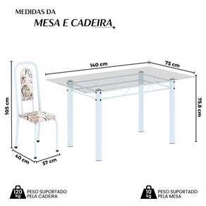 Quer deixar sua casa completa e prática? Uma dica bacana de como transformar o seu lar, deixando-o mais receptivo e bonito? Então você precisa de móveis indispensáveis para deixar seu lar muito mais aconchegante, receptivo e sempre disponível para receber a visita de amigos, familiares e convidados. Você vai se apaixonar por este incrível e moderno Conjunto de Mesa com 6 Cadeiras. Ideal para cozinha, ele é a melhor opção para completar o espaço que você desejar. Aproveite!! Medida da Mesa (A x L x P): 75,8 cm x 140 cm x 75 cm Peso da Mesa: 21,35 kg Mesa suporta até: 10.0000 Acabamento da Cadeira/Banco: Pintura Texturizada Acabamento da Mesa: Pintura Texturizada Ambiente Principal: Cozinha Cadeira/Banco Estofada: Encosto e Assento Estofados Cadeira/Banco estofada: Encosto e Assento Estofados Cadeira/Banco suporta até: 120.0000 codigo_ean: 7900288146373 Complexidade da Montagem: Baixa: pode ser montado por uma pessoa sozinha Cor: Arabesco / Branco Cor do Produto: Arabesco / Branco Cor Secundária: Bege De Canto (Canto Alemão): Não Enchimento do Assento: Espuma D-16 Escala de Brilho: Brilhante Espessura do Tampo: 6 mm Espessura do Vidro: 6 mm Estrutura do Assento: MDP Formato do Tampo: Retangular Itens Inclusos: 1 Mesa, 6 Cadeiras, Manual de Montagem e Kit Ferragens Linha ou Coleção: Lara Manual de Montagem e Instalação: https://product-hub-prd.madeiramadeira.com.br/472390504/documents/890a24b9-aed2-47c6-8da9-7c900c56799ee2821966352817442234269539.pdf Marca: Soma Móveis Material da Base da Mesa: Aço Material da Estrutura da Cadeira: Aço Material do Tampo: Vidro Medida da Cadeira/Banco (A x L x P): 105 cm x 37 cm x 40 cm Medida do Tampo (L x C x E): 140cm x 75cm x 0,6cm Mesa Extensível: Não Necessita Montagem: Sim Origem do Produto: Nacional Peso da Cadeira/Banco: 2,7 kg Possui Apoio Para os Pés: Não Quantidade de Cadeiras: 6 Quantidade de Lugares: 06 Recomendações de Uso, Manutenção e Limpeza: Não permitir que molhe os pés da base, usar um pano de tecido macio e seco, evitar detergentes, alvejantes e produtos químicos de limpeza; no tampo usar tecido macio levemente umedecido. Revestimento da Cadeira/Banco: Couro Ecológico Sistema de Montagem: Parafusos Vidro Temperado: Sim