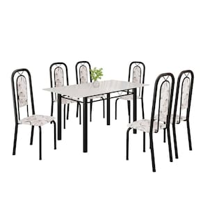 Conjunto de Mesa Tubular com 6 Cadeiras Lara Arabesco / Preto