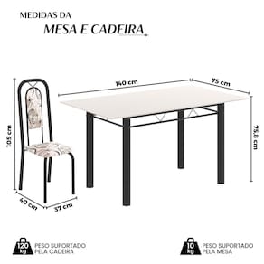 Medida da Mesa (A x L x P): 75,8 cm x 140 cm x 75 cm