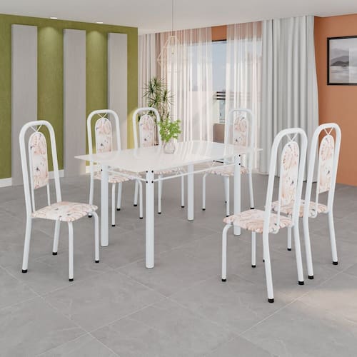 Quer deixar sua casa completa e prática? Uma dica bacana de como transformar o seu lar, deixando-o mais receptivo e bonito? Então você precisa de móveis indispensáveis para deixar seu lar muito mais aconchegante, receptivo e sempre disponível para receber a visita de amigos, familiares e convidados. Você vai se apaixonar por este incrível e moderno Conjunto de Mesa com 6 Cadeiras. Ideal para cozinha, ele é a melhor opção para completar o espaço que você desejar. Aproveite!! Medida da Mesa (A x L x P): 75,8 cm x 140 cm x 75 cm Peso da Mesa: 21,35 kg Mesa suporta até: 10.0000 Acabamento da Cadeira/Banco: Pintura Texturizada Acabamento da Mesa: Pintura Texturizada Ambiente Principal: Cozinha Cadeira/Banco Estofada: Encosto e Assento Estofados Cadeira/Banco estofada: Encosto e Assento Estofados Cadeira/Banco suporta até: 120.0000 codigo_ean: 7900288146502 Complexidade da Montagem: Baixa: pode ser montado por uma pessoa sozinha Cor: Bege / Branco Cor do Produto: Bege / Branco Cor Secundária: Bege De Canto (Canto Alemão): Não Enchimento do Assento: Espuma D-16 Escala de Brilho: Brilhante Espessura do Tampo: 6 mm Espessura do Vidro: 6 mm Estrutura do Assento: MDP Formato do Tampo: Retangular Itens Inclusos: 1 Mesa, 6 Cadeiras, Manual de Montagem e Kit Ferragens Linha ou Coleção: Lara Manual de Montagem e Instalação: https://product-hub-prd.madeiramadeira.com.br/672651644/documents/d4b38ddc-9d02-40e7-a413-9fd8b50f8272a2821966352817442234269539.pdf Marca: Soma Móveis Material da Base da Mesa: Aço Material da Estrutura da Cadeira: Aço Material do Tampo: Vidro Medida da Cadeira/Banco (A x L x P): 105 cm x 37 cm x 40 cm Medida do Tampo (L x C x E): 140cm x 75cm x 0,6cm Mesa Extensível: Não Necessita Montagem: Sim Origem do Produto: Nacional Peso da Cadeira/Banco: 2,7 kg Possui Apoio Para os Pés: Não Quantidade de Cadeiras: 6 Quantidade de Lugares: 06 Recomendações de Uso, Manutenção e Limpeza: Não permitir que molhe os pés da base, usar um pano de tecido macio e seco, evitar detergentes, alvejantes e produtos químicos de limpeza; no tampo usar tecido macio levemente umedecido. Revestimento da Cadeira/Banco: Couro Ecológico Sistema de Montagem: Parafusos Vidro Temperado: Sim