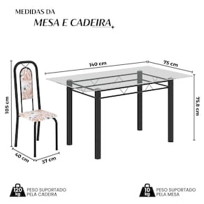 Quer deixar sua casa completa e prática? Uma dica bacana de como transformar o seu lar, deixando-o mais receptivo e bonito? Então você precisa de móveis indispensáveis para deixar seu lar muito mais aconchegante, receptivo e sempre disponível para receber a visita de amigos, familiares e convidados. Você vai se apaixonar por este incrível e moderno Conjunto de Mesa com 6 Cadeiras. Ideal para cozinha, ele é a melhor opção para completar o espaço que você desejar. Aproveite!! Medida da Mesa (A x L x P): 75,8 cm x 140 cm x 75 cm Peso da Mesa: 21,35 kg Mesa suporta até: 10.0000 Acabamento da Cadeira/Banco: Pintura Texturizada Acabamento da Mesa: Pintura Texturizada Ambiente Principal: Cozinha Cadeira/Banco Estofada: Encosto e Assento Estofados Cadeira/Banco estofada: Encosto e Assento Estofados Cadeira/Banco suporta até: 120.0000 codigo_ean: 7900288146403 Complexidade da Montagem: Baixa: pode ser montado por uma pessoa sozinha Cor: Bege / Preto Cor do Produto: Bege / Preto Cor Secundária: Bege De Canto (Canto Alemão): Não Enchimento do Assento: Espuma D-16 Escala de Brilho: Semi-Brilho Espessura do Tampo: 6 mm Espessura do Vidro: 6 mm Estrutura do Assento: MDP Formato do Tampo: Retangular Itens Inclusos: 1 Mesa, 6 Cadeiras, Manual de Montagem e Kit Ferragens Linha ou Coleção: Lara Manual de Montagem e Instalação: https://product-hub-prd.madeiramadeira.com.br/354912426/documents/6355b8a9-9bed-410c-9e00-e539463924fae2821966352817442234269539.pdf Marca: Soma Móveis Material da Base da Mesa: Aço Material da Estrutura da Cadeira: Aço Material do Tampo: Vidro Medida da Cadeira/Banco (A x L x P): 105 cm x 37 cm x 40 cm Medida do Tampo (L x C x E): 140cm x 75cm x 0,6cm Mesa Extensível: Não Necessita Montagem: Sim Origem do Produto: Nacional Peso da Cadeira/Banco: 2,7 kg Possui Apoio Para os Pés: Não Quantidade de Cadeiras: 6 Quantidade de Lugares: 06 Recomendações de Uso, Manutenção e Limpeza: Não permitir que molhe os pés da base, usar um pano de tecido macio e seco, evitar detergentes, alvejantes e produtos químicos de limpeza; no tampo usar tecido macio levemente umedecido. Revestimento da Cadeira/Banco: Couro Ecológico Sistema de Montagem: Parafusos Vidro Temperado: Sim