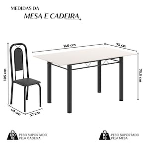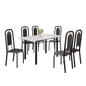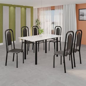 Quer deixar sua casa completa e prática? Uma dica bacana de como transformar o seu lar, deixando-o mais receptivo e bonito? Então você precisa de móveis indispensáveis para deixar seu lar muito mais aconchegante, receptivo e sempre disponível para receber a visita de amigos, familiares e convidados. Você vai se apaixonar por este incrível e moderno Conjunto de Mesa com 6 Cadeiras. Ideal para cozinha, ele é a melhor opção para completar o espaço que você desejar. Aproveite!! Medida da Mesa (A x L x P): 75,8 cm x 140 cm x 75 cm Peso da Mesa: 21,35 kg Mesa suporta até: 10.0000 Acabamento da Cadeira/Banco: Pintura Texturizada Acabamento da Mesa: Pintura Texturizada Ambiente Principal: Cozinha Cadeira/Banco Estofada: Encosto e Assento Estofados Cadeira/Banco estofada: Encosto e Assento Estofados Cadeira/Banco suporta até: 120.0000 codigo_ean: 7900288146564 Complexidade da Montagem: Baixa: pode ser montado por uma pessoa sozinha Cor: Preto Cor do Produto: Preto Cor Secundária: Cinza De Canto (Canto Alemão): Não Enchimento do Assento: Espuma D-16 Escala de Brilho: Semi-Brilho Espessura do Tampo: 6 mm Espessura do Vidro: 6 mm Estrutura do Assento: MDP Formato do Tampo: Retangular Itens Inclusos: 1 Mesa, 6 Cadeiras, Manual de Montagem e Kit Ferragens Linha ou Coleção: Lara Manual de Montagem e Instalação: https://product-hub-prd.madeiramadeira.com.br/710804100/documents/b34841a8-5a07-4812-bad2-aae5ca5249a3a2821966352817442234269539.pdf Marca: Soma Móveis Material da Base da Mesa: Aço Material da Estrutura da Cadeira: Aço Material do Tampo: Vidro Medida da Cadeira/Banco (A x L x P): 105 cm x 37 cm x 40 cm Medida do Tampo (L x C x E): 140cm x 75cm x 0,6cm Mesa Extensível: Não Necessita Montagem: Sim Origem do Produto: Nacional Peso da Cadeira/Banco: 2,7 kg Possui Apoio Para os Pés: Não Quantidade de Cadeiras: 6 Quantidade de Lugares: 06 Recomendações de Uso, Manutenção e Limpeza: Não permitir que molhe os pés da base, usar um pano de tecido macio e seco, evitar detergentes, alvejantes e produtos químicos de limpeza; no tampo usar tecido macio levemente umedecido. Revestimento da Cadeira/Banco: Couro Ecológico Sistema de Montagem: Parafusos Vidro Temperado: Sim