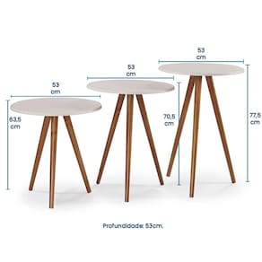 Itens Inclusos: 1 Mesa Tripé Grande | 1 Mesa Tripé Média | 1 Mesa Tripé Pequena