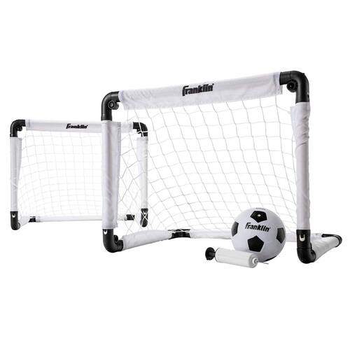 Conjunto de metas de minisfutebol infantil Franklin Sports — Mini rede de quintal/interior e bola com bomba — tamanho de gol de 22" x 17", branco/preto