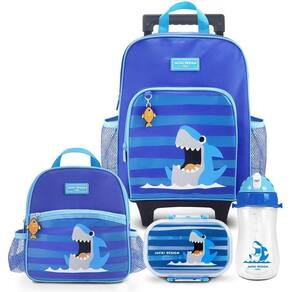 Conjunto de Mochila de carrinho com Lancheira Térmica com pote e garrafa Azul -